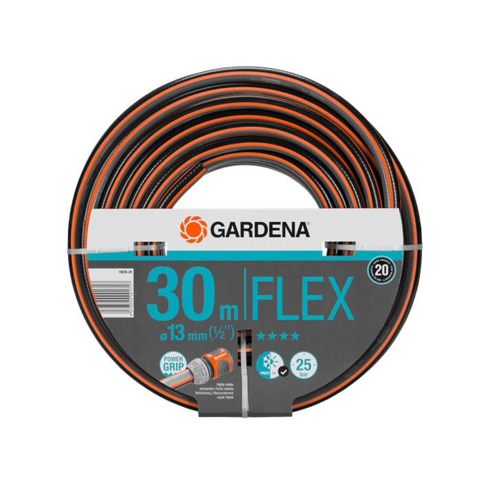 De Gardena Comfort Flex slang heeft een diameter van 13 mm en in deze uitvoering een lengte van 30 meter. Als je een andere lengte zoekt adviseren wij je om te kijken Gardena Comfort Flex slang. De slang heeft een barstdruk van 25 bar en is dus erg sterk, ook is deze slang UV-bestendig. Dit alles maakt de tuinslang goed bestand tegen zonlicht en veroudering.