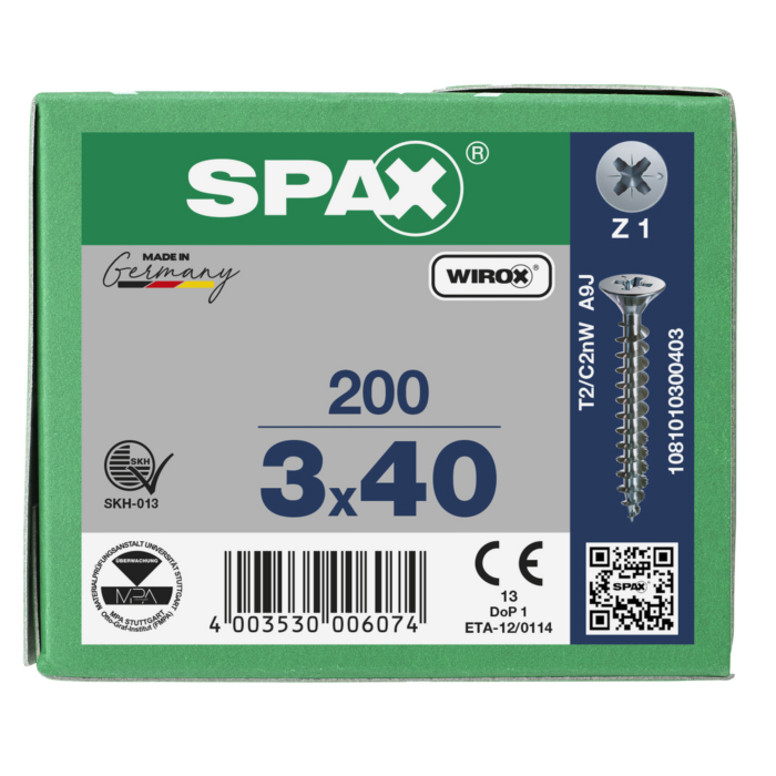 Spax spaanplaatschroeven PZ1 verzinkt 3 x 40 mm voldraad 200 stuks