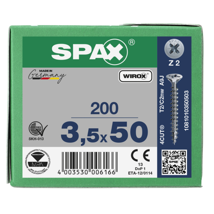 Spax spaanplaatschroeven PZ2 verzinkt 3.5 x 50 mm voldraad 200 stuks