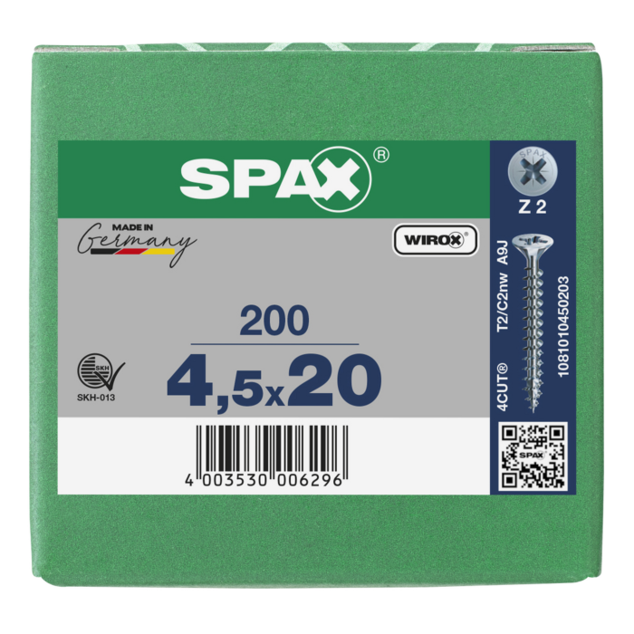 Spax spaanplaatschroeven PZ2 verzinkt 4.5 x 20 mm voldraad 200 stuks