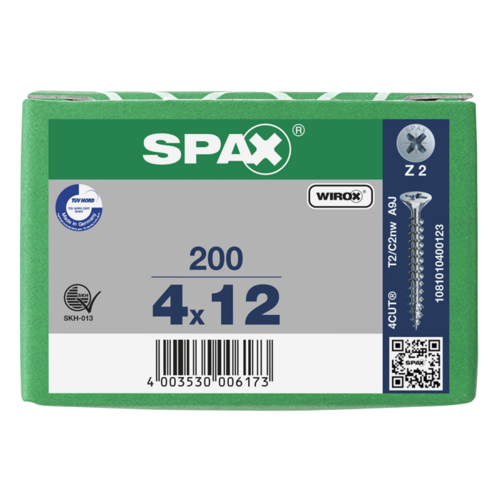Spax spaanplaatschroeven PZ2 verzinkt 4 x 12 mm voldraad 200 stuks