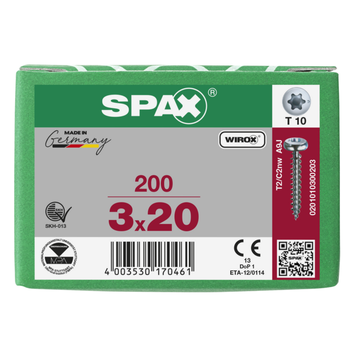 Spax spaanplaatschroeven T10 cilinderkop verzinkt 3 x 20 mm voldraad 200 stuks
