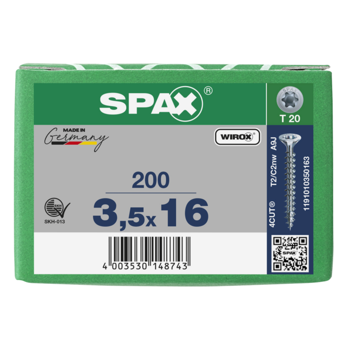 Spax spaanplaatschroeven T20 verzinkt 3.5 x 16 mm voldraad 200 stuks