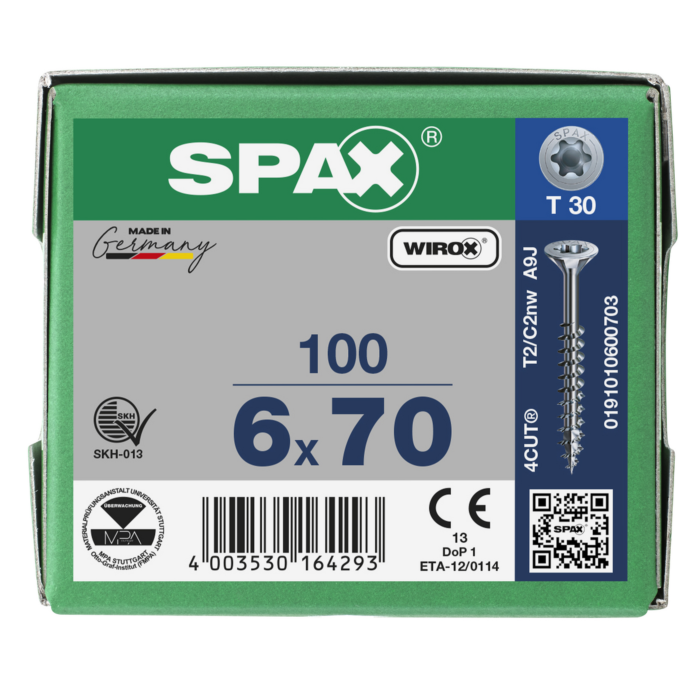 Spax spaanplaatschroeven T30 verzinkt 6 x 70 mm deeldraad 100 stuks