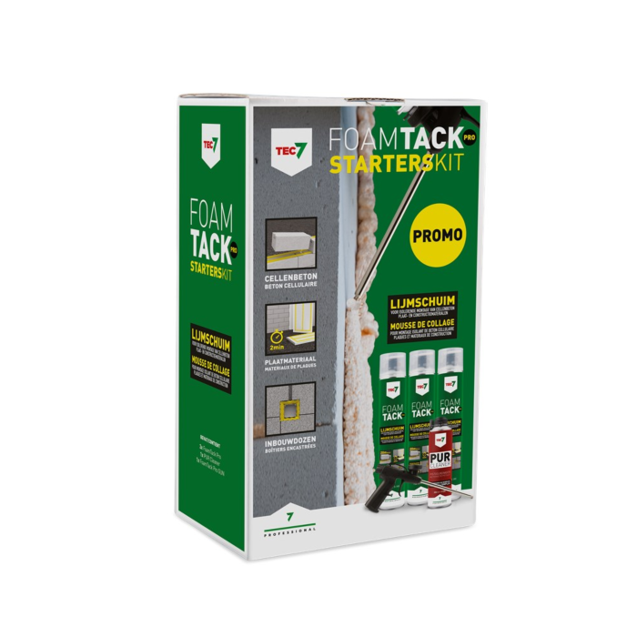 Ben je nieuw met Tec7 en heb je nog geen schuimpistool en cleaner dan is deze startset FoamTack Pro een goede keus! Met deze promo verpakking haal je de belangrijkste items in huis en heb je genoeg voor een eerste klus om uit te proberen en te ervaren hoe super fijn en makkelijk deze lijmschuim werkt!